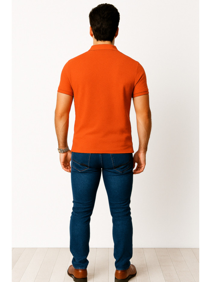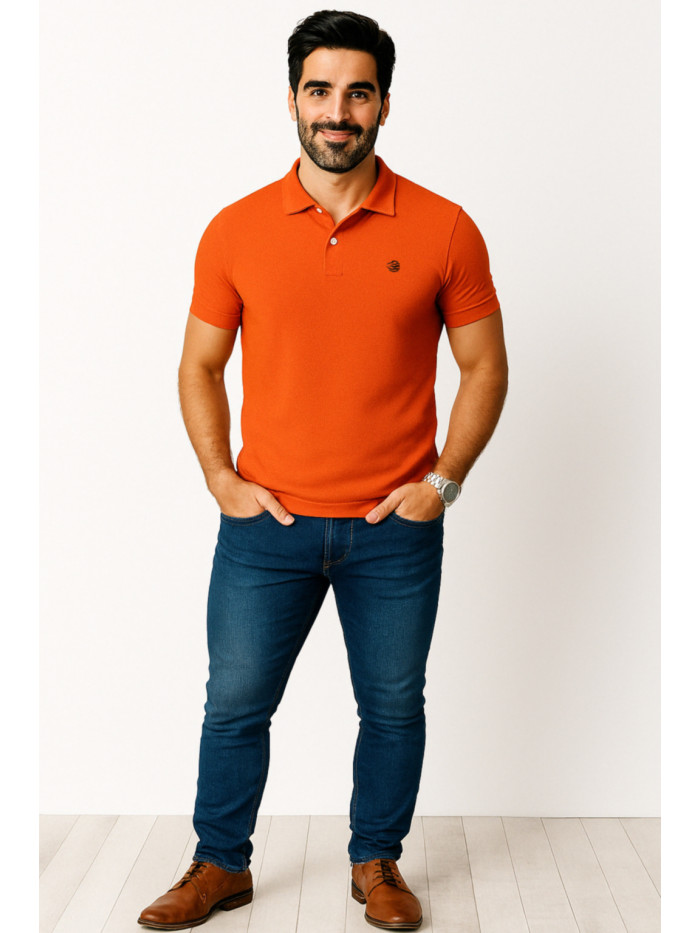 Doğadan ilham alan zarif bir tonla stilini tamamla. %100 pamuklu dokusuyla nefes alabilen, yumuşak ve konforlu bir giyim deneyimi sunan bu turuncu polo tişört, hem günlük kullanıma hem de daha şık kombinlere uyum sağlar.